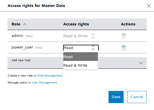 In the Details view, a new Access Rights section and an edit button provide the options of Read or Read & Write access rights for the roles.