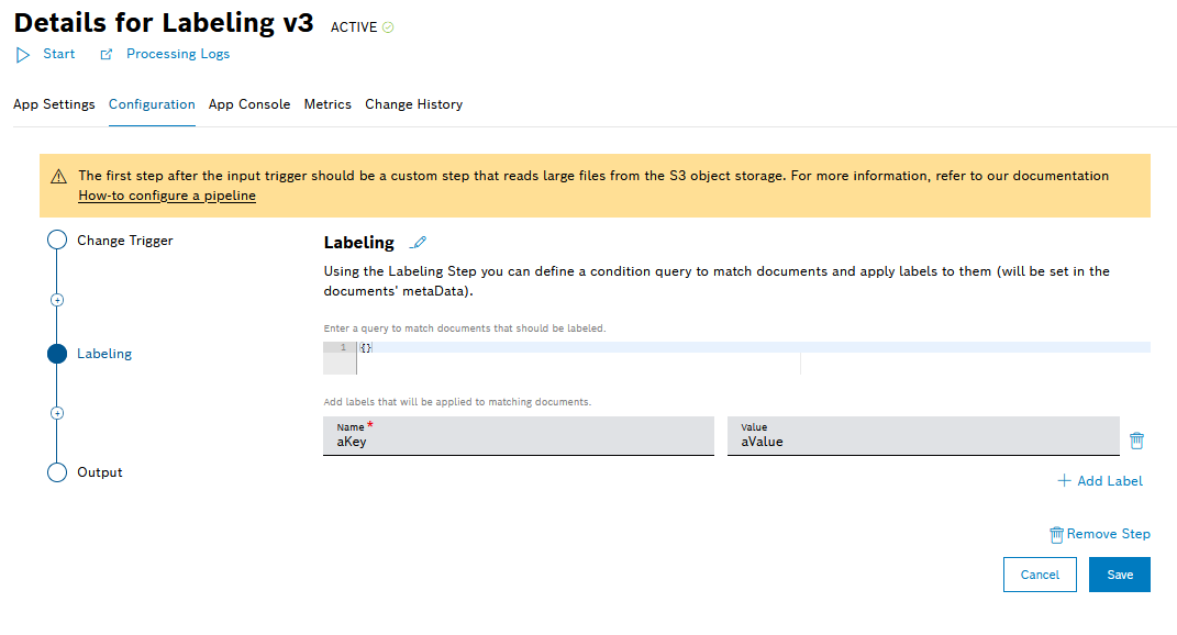 Therefore, we will migrate the existing Tagging/Labeling from conditional actions into matching pipelines, where the collection in the Output step matches the collection in the conditional action.