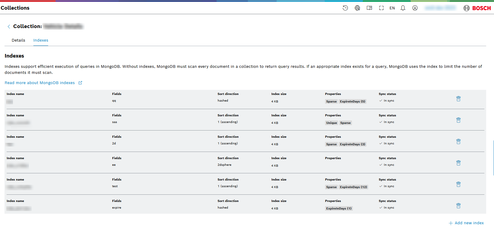 To add new index use Add new index button at the right-hand side at the bottom. Then you will be prompted to enter the following information in the Add new index window: