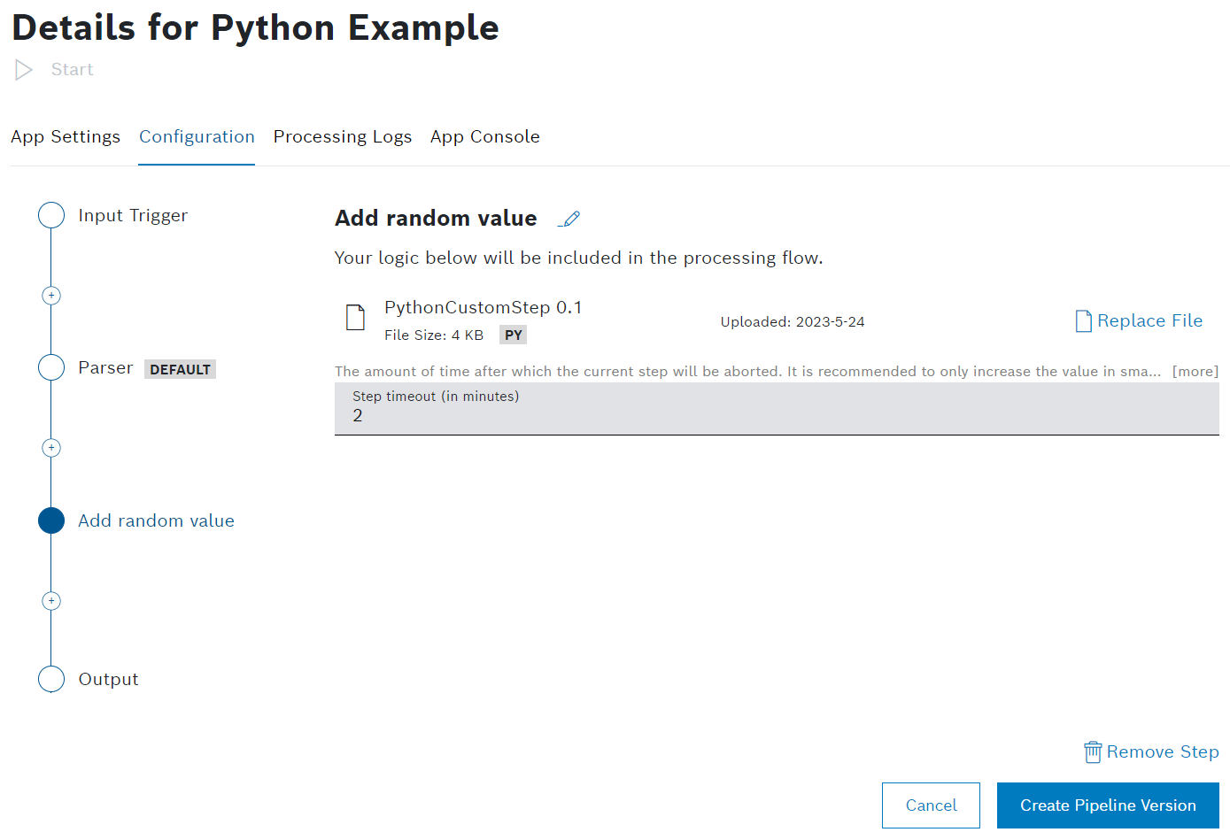 step.pyscript for editing as we will add a random value to our pipeline data. - Add