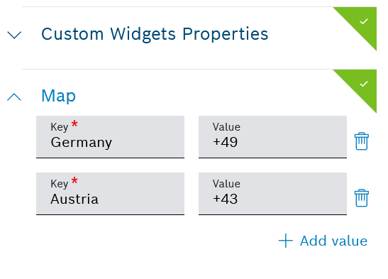"isNameMandatory": {"type": "boolean","default": true,"label": {"en": "Is name mandatory","de": "Ist der Name obligatorisch?"}}mapProvides a key-value editor in its own independent section.