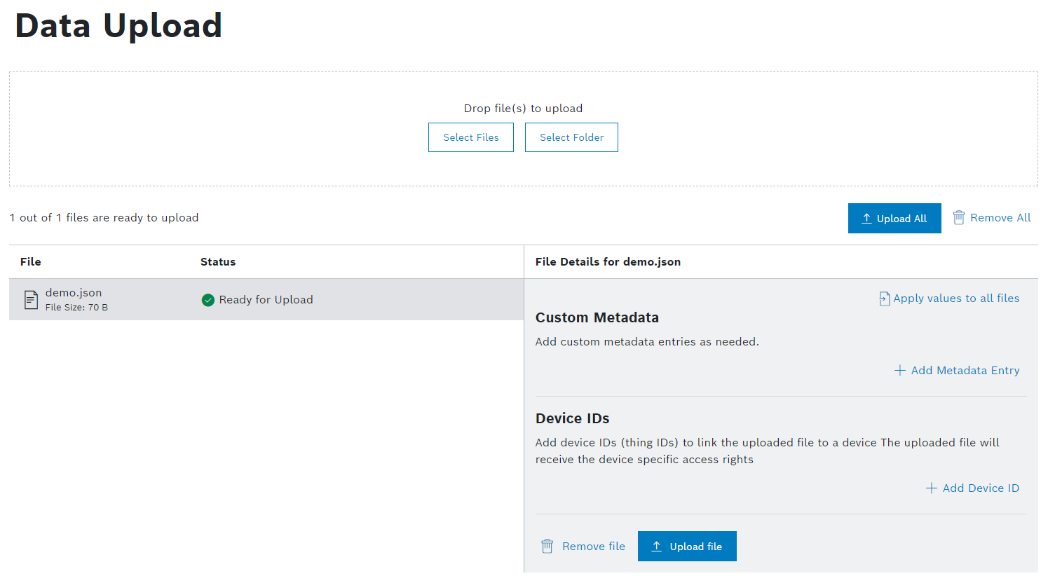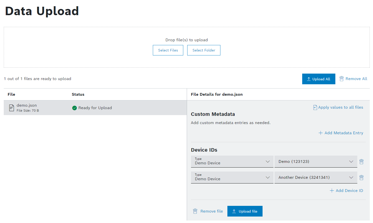 Using the Data Upload, you can upload files and folders for processing, metadata assignment, and device ID linking.