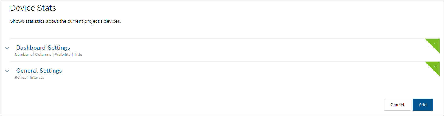 - Select the Device Stats widget in the widget list.