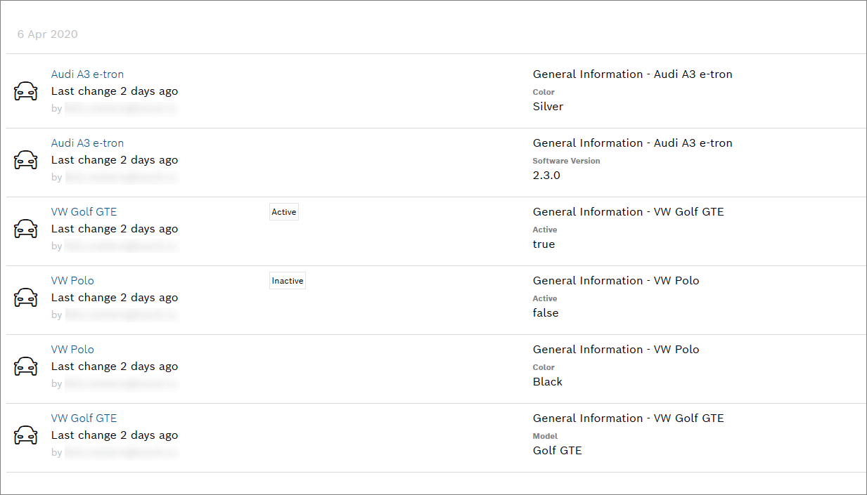 The Device Management functionality also offers a History view. The history view stores all changes that have been made to the device over time. It provides the following information: