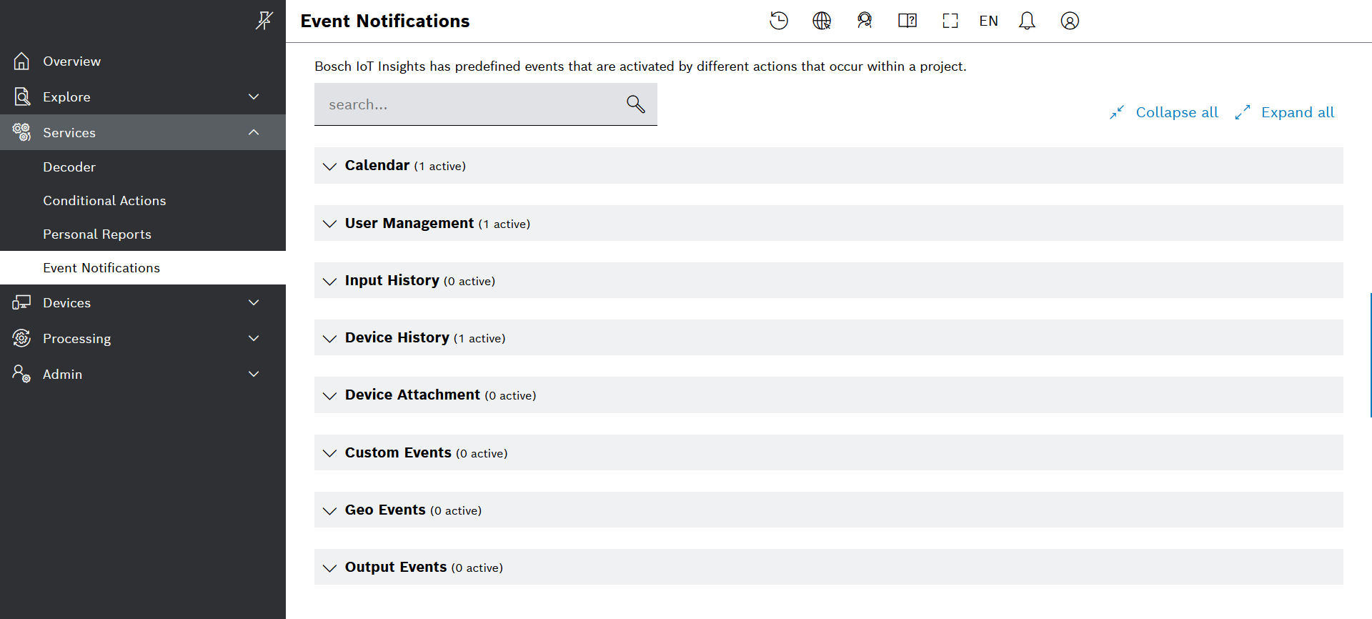 - Expand the event group of interest or use the search bar to navigate faster to the relevant event.