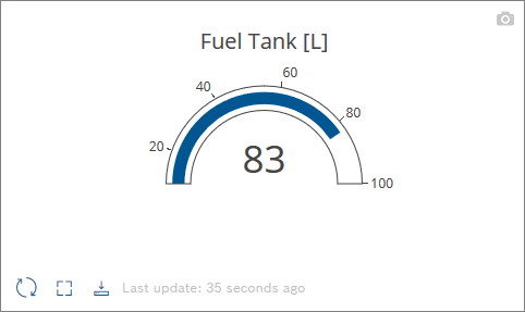 Using the Gauge Chart widget, one value from your data can be displayed, e.g. a signal for pressure, temperature, or speed.
