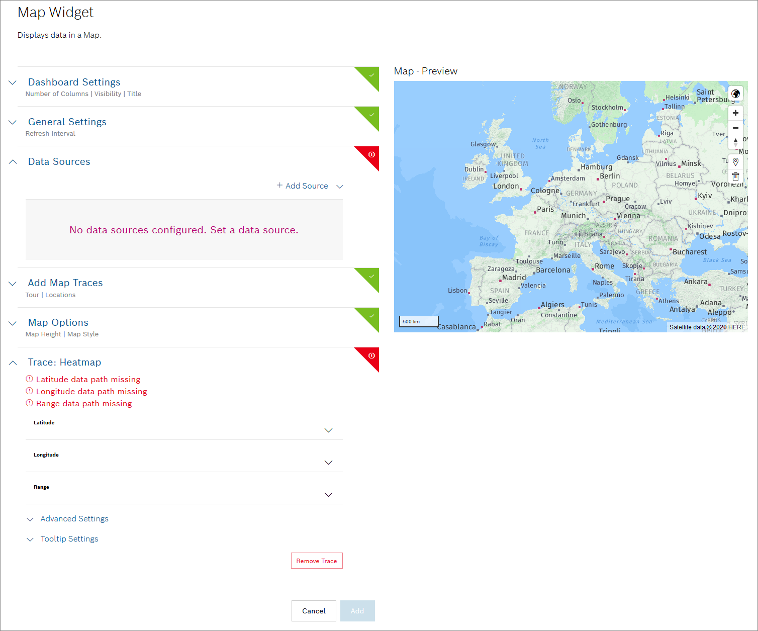 Open the Add Map Traces pane to select one or multiple additional map traces that can be added to the map.