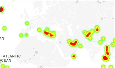 - In the Intensity field, enter a value to adjust the look of the heatmap based on the zoom level.