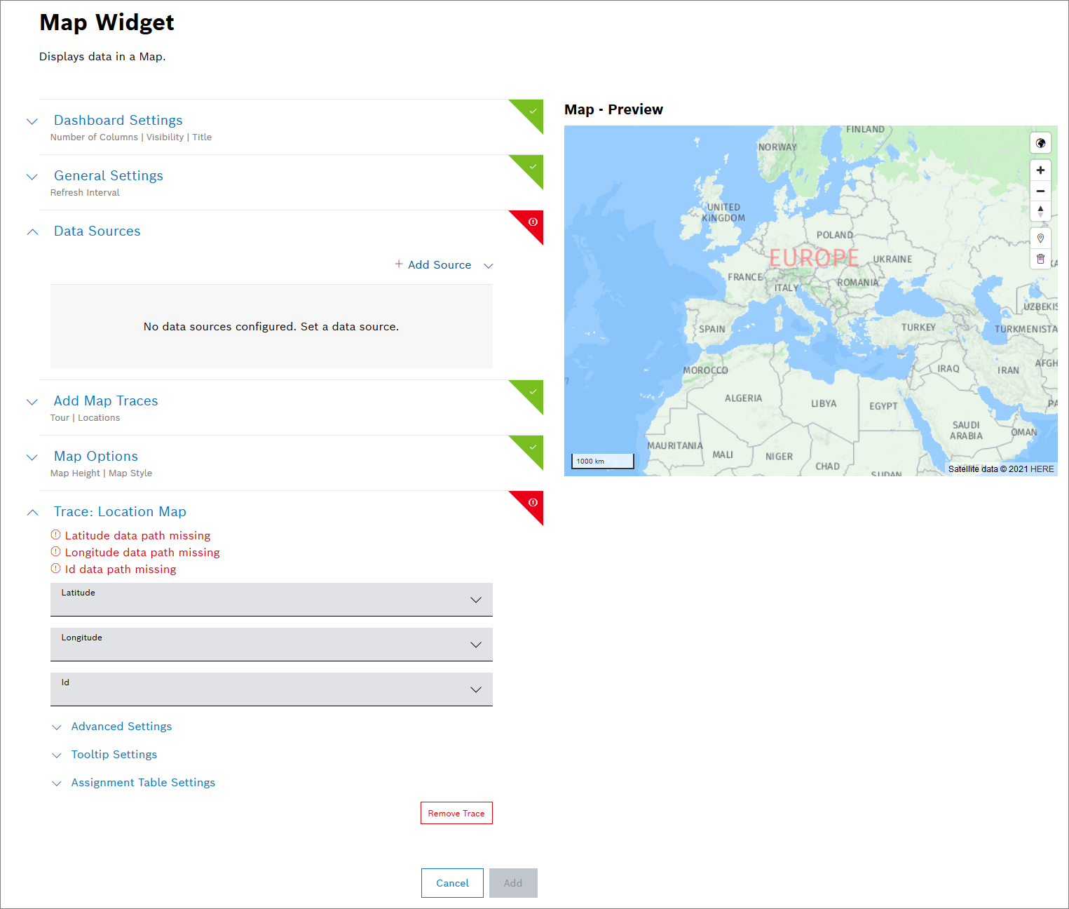 Open the Add Map Traces pane to select one or multiple additional map traces that can be added to the map.
