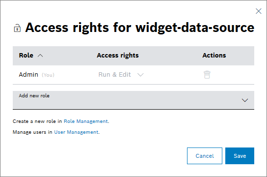 You can manage the access rights of each query template for each user role. This is especially important if you want to share query templates and use them as data source for widgets.