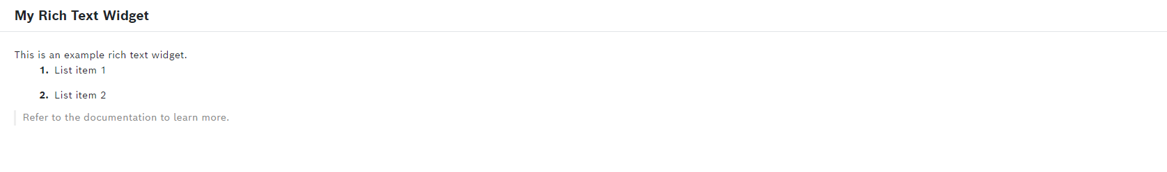The Rich Text widget allows you to display formatted static and dynamic text, as well as links, images, and tables in order to provide for example a description of your project.