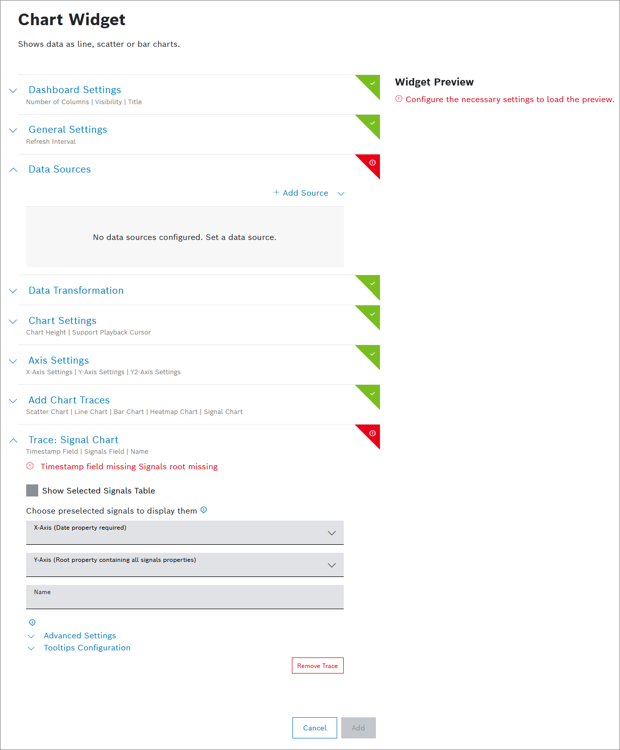 → The chart trace is added and can be configured as described in the corresponding chapters.