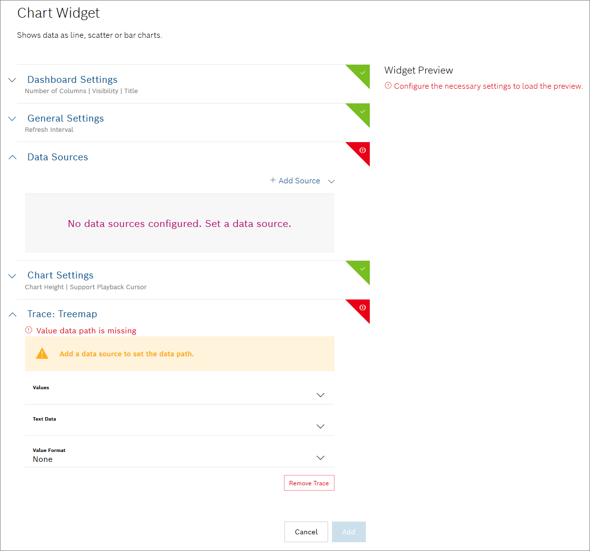 → The widget configuration page is displayed. - Configure the settings as described below.