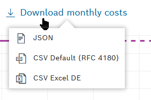 When clicking on the download icon you can select from a list of formats. The downloaded file will list the total estimated costs as well as individual costs for each metric.