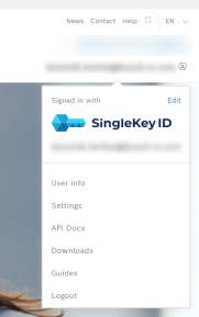 - Accessing the user menu (for users authenticated via SingleKey ID)