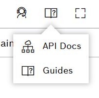 → The API documentation opens in the same tab. - Click Guides to access the comprehensive documentation of Bosch IoT Insights.