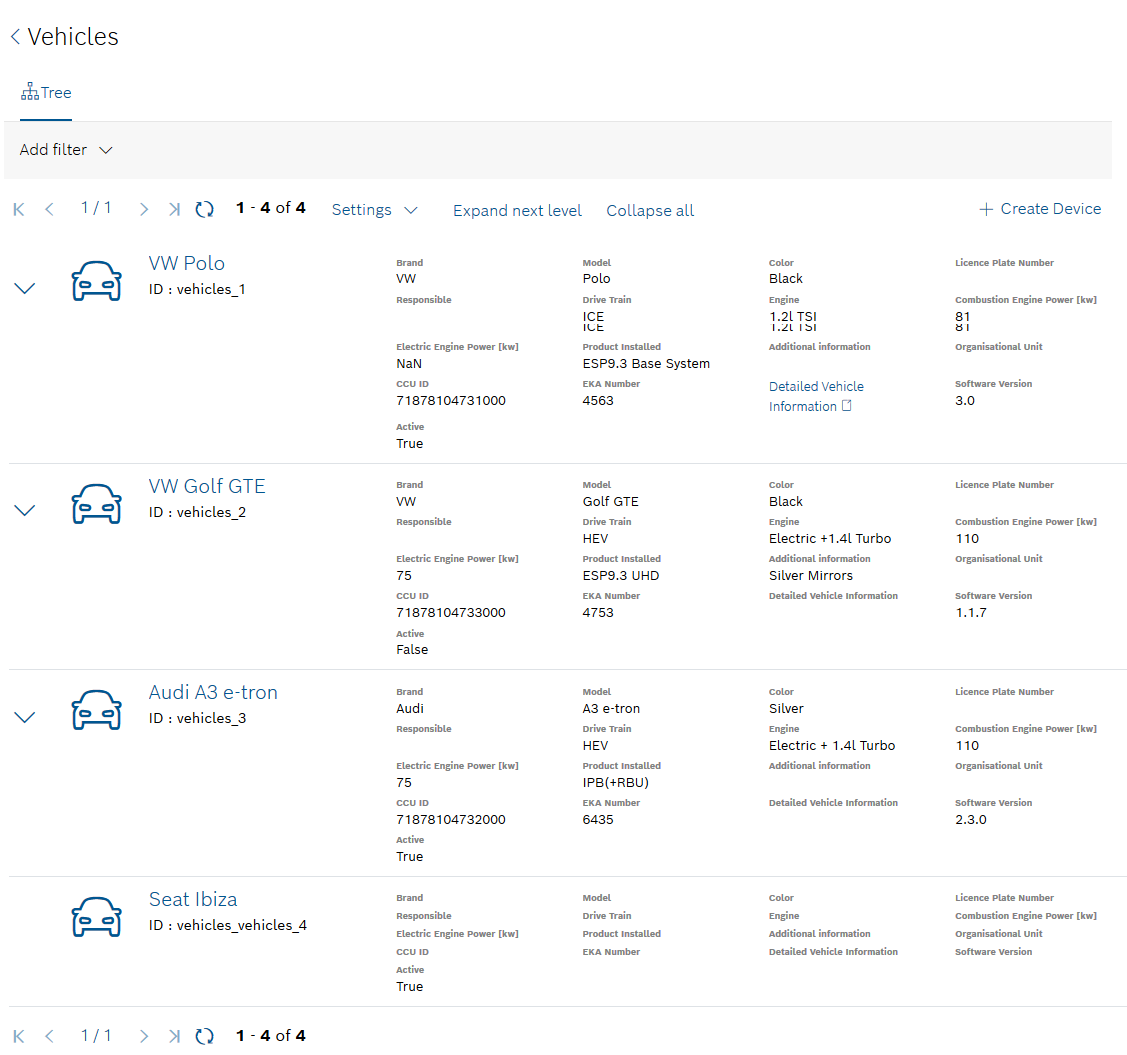 → A list of devices belonging to the device type is opened and you can see general information on each device.